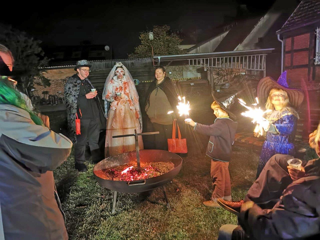 Melanie, Ralf, Pia und Emily vom Jugendklub sowie Edeltraut und Gabi gestalteten das Areal zu einer Geisterstätte um, die Feuerschale lud zum Plaudern ein, Dietmar Kruppke versorgte die Hungrigen und Durstigen und der Mond gab auch sein Bestes.