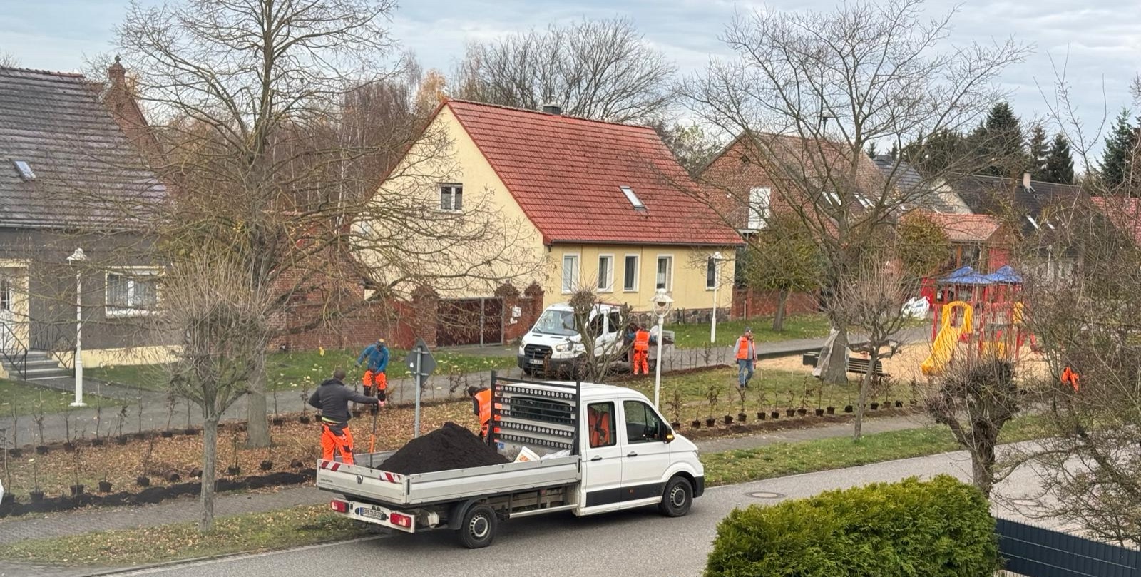 Um unseren Spielplatz am Dorfanger wurde eine neue Hecke gepflanzt. Da Ausgleichpflanzungen innerhalb der Gemeinde aufgrund des Neubaus des Radweges vorgenommen werden mussten, haben sich die Gemeindevertreter u.a. für diese Hecke entschieden. Zu dieser Aktion gehört auch die frisch gepflanzte Streuobstwiese am Dorfeingang, die für jeden zugänglich ist.