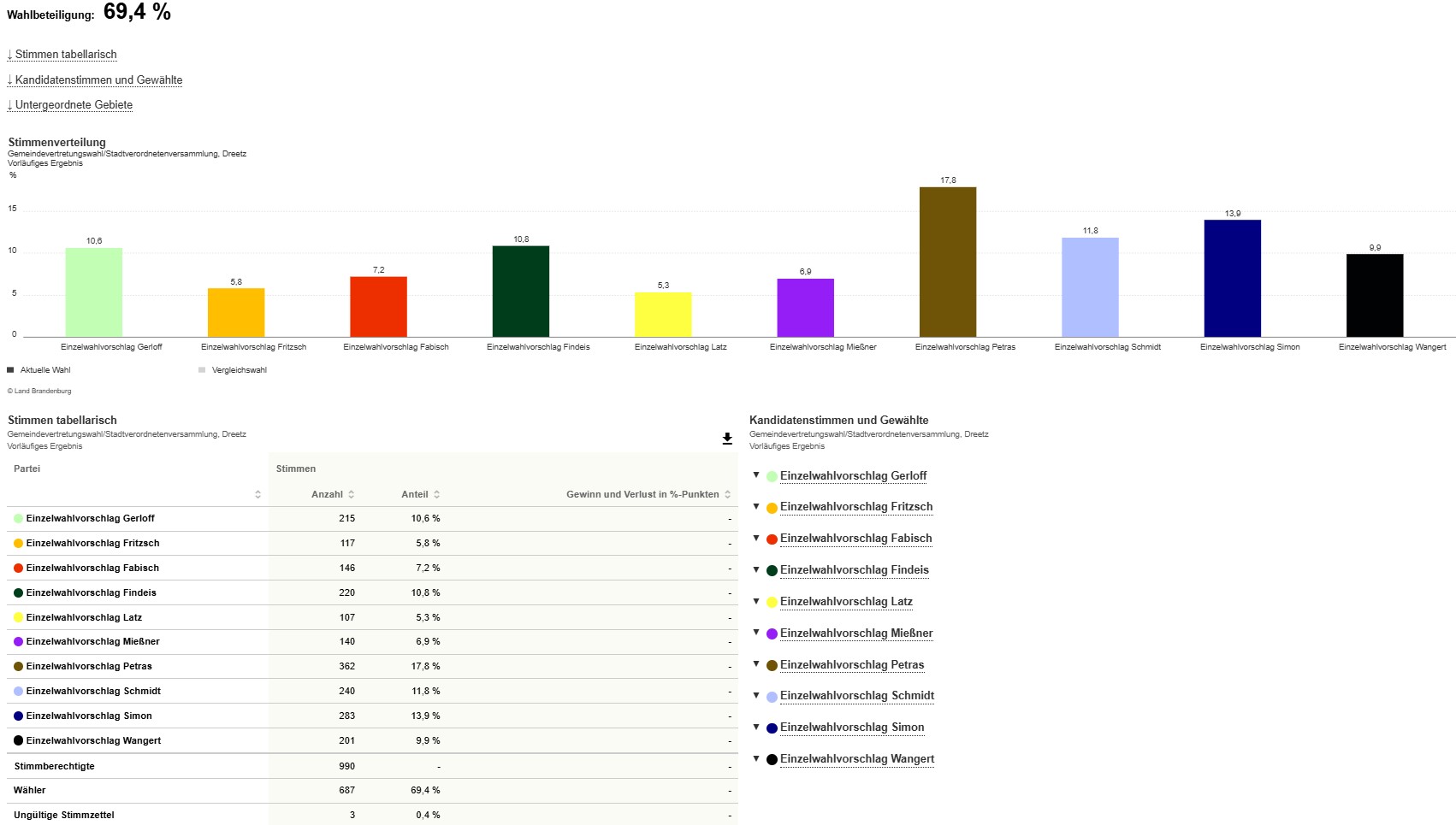 Dreetzer Gemeindevertreter der Legislaturperiode 2024 - 2029