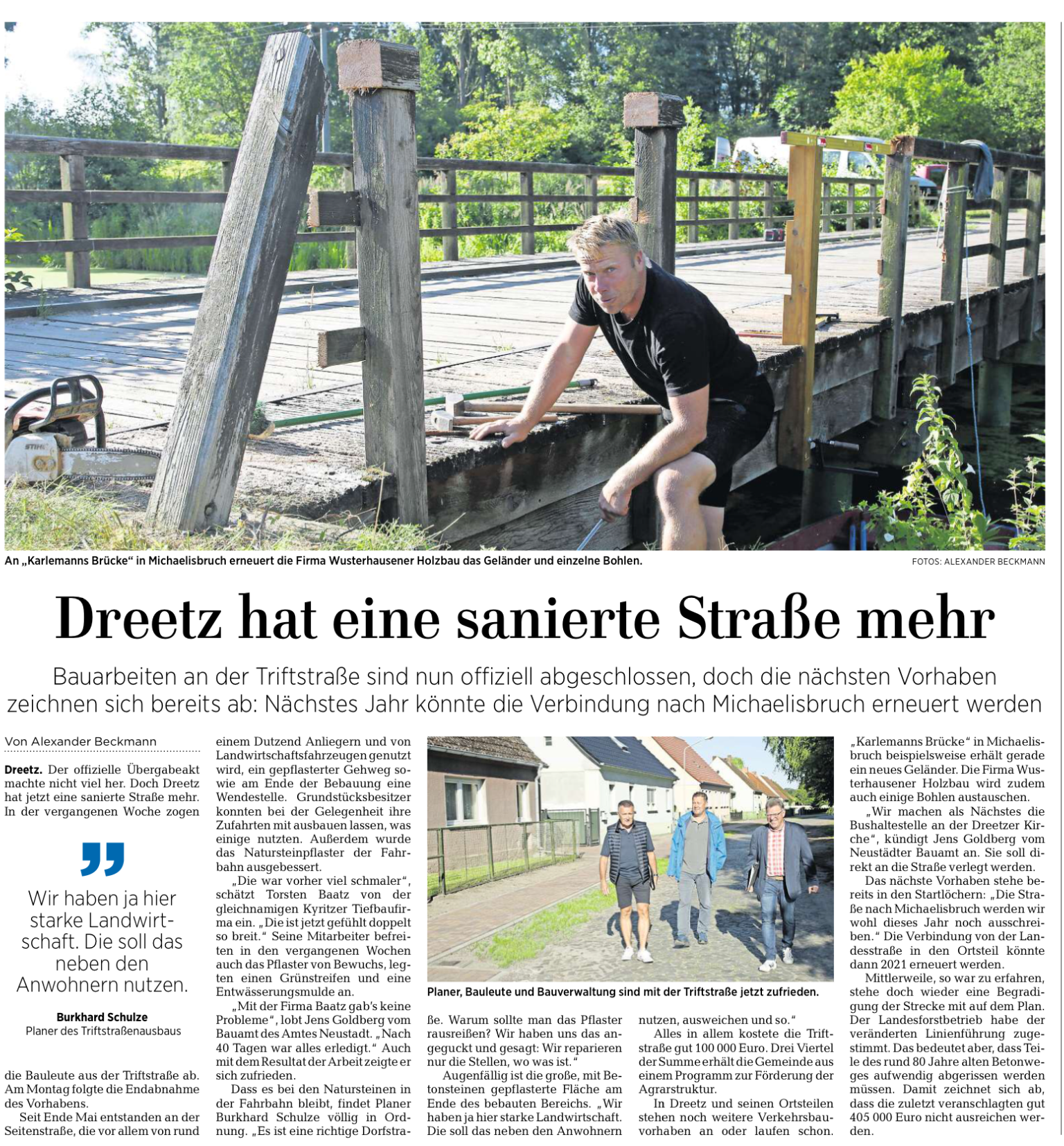 14.07.2020: Dreetz hat eine sanierte Straße mehr