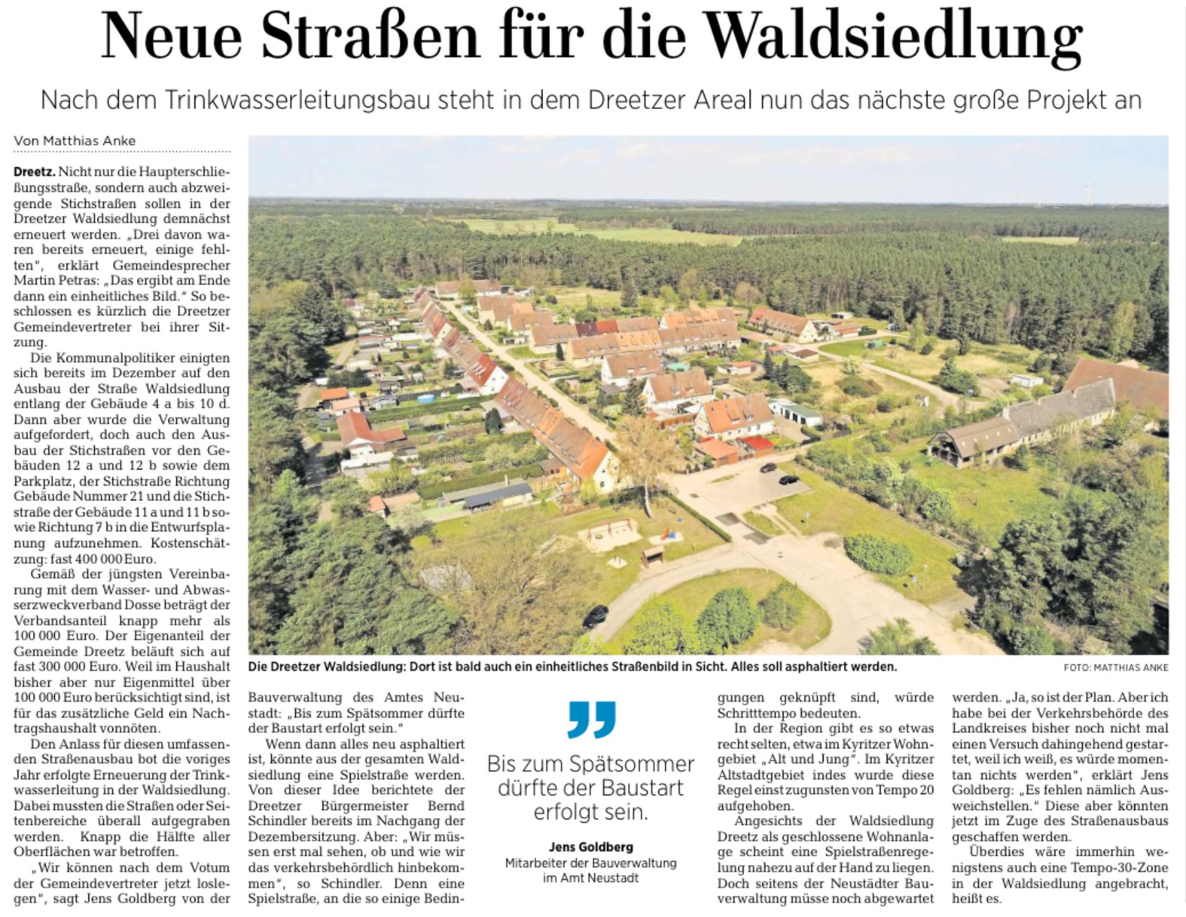 05.05.2022: Neue Straßen für die Waldsiedlung