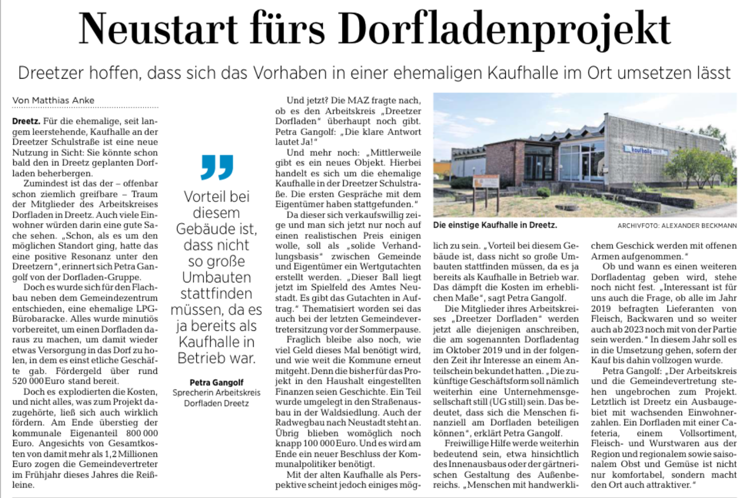 11.08.2022: Neustart für Dorfladenprojekt