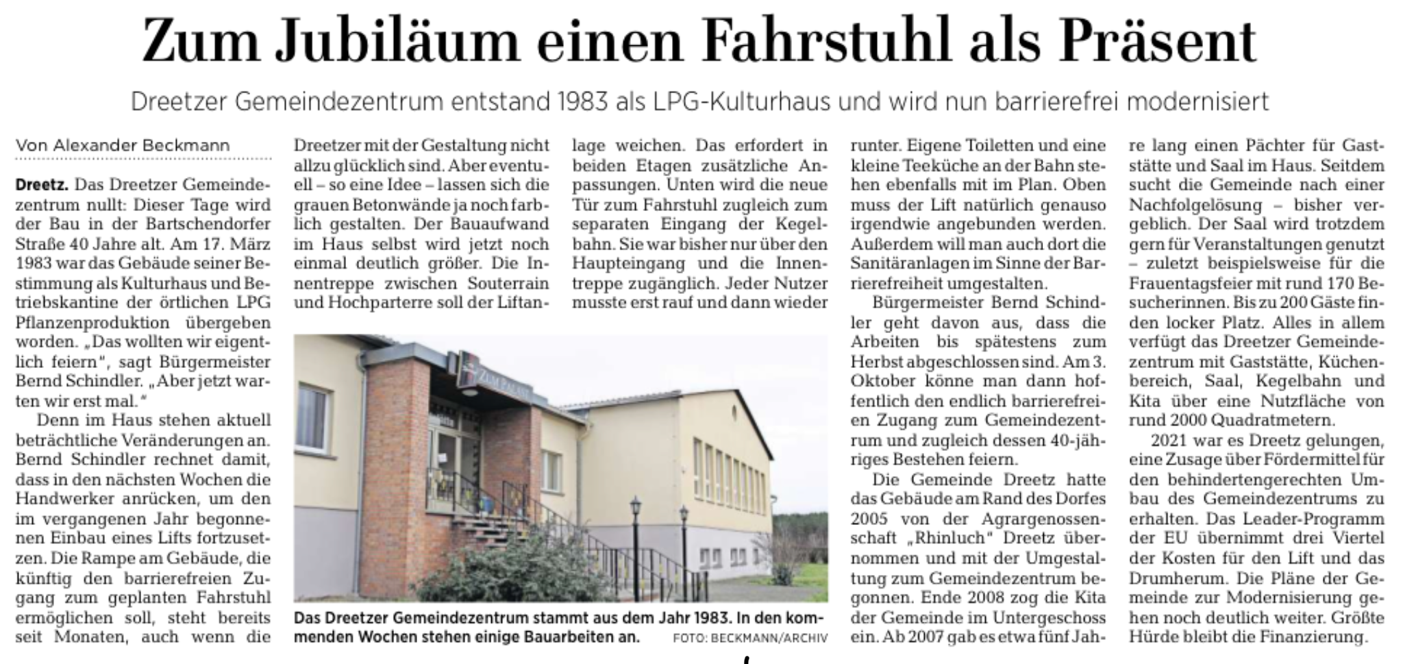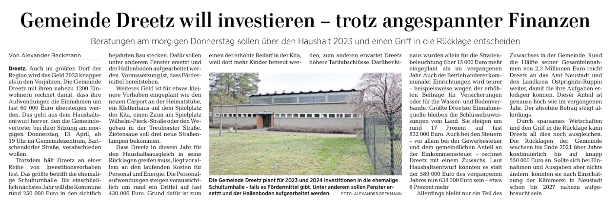 12.04.2023: Gemeinde Dreetz will weiter investieren