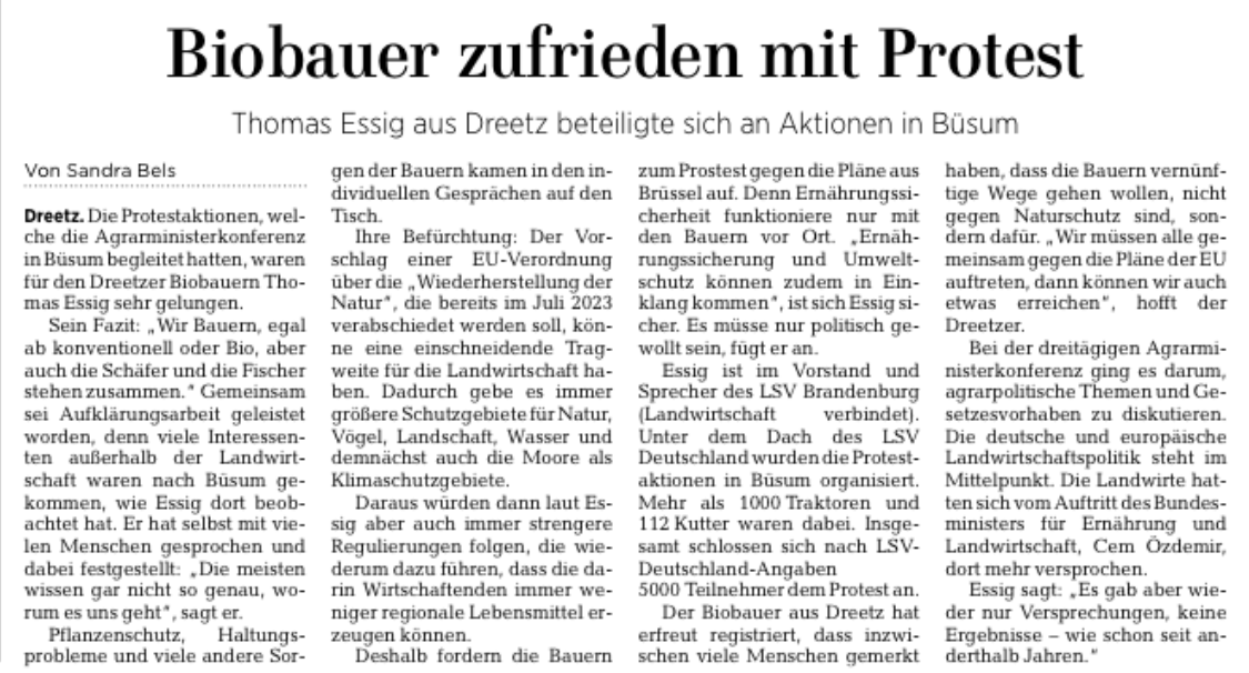 24.03.2023: Dreetzer Biobauer ruft zu Protest auf