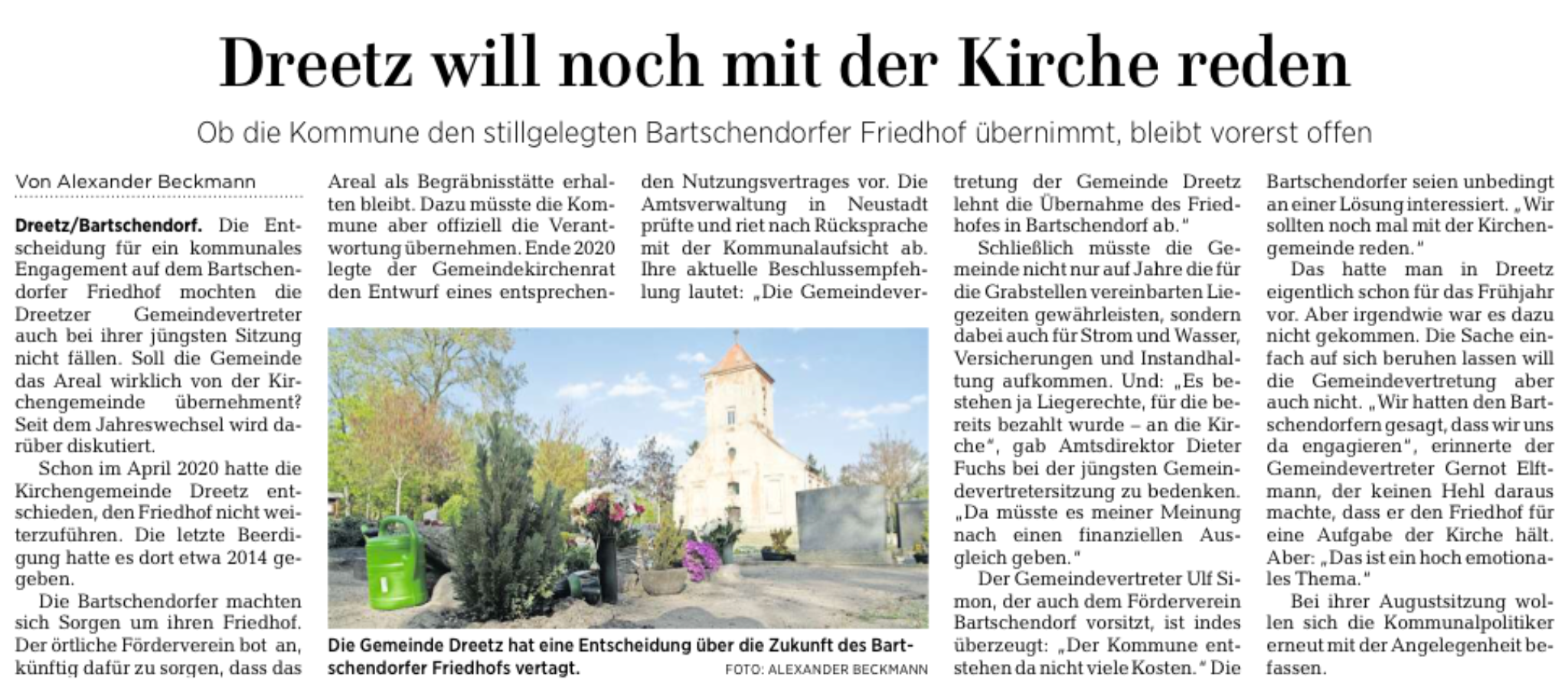 25.06.2021: Friedhof Bartschendorf - hier besteht noch Redebedarf