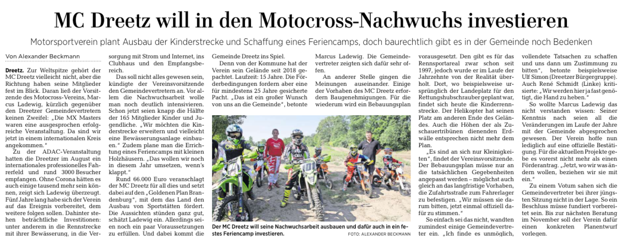 15.10.2021: MC Dreetz investiert in den Nachwuchs