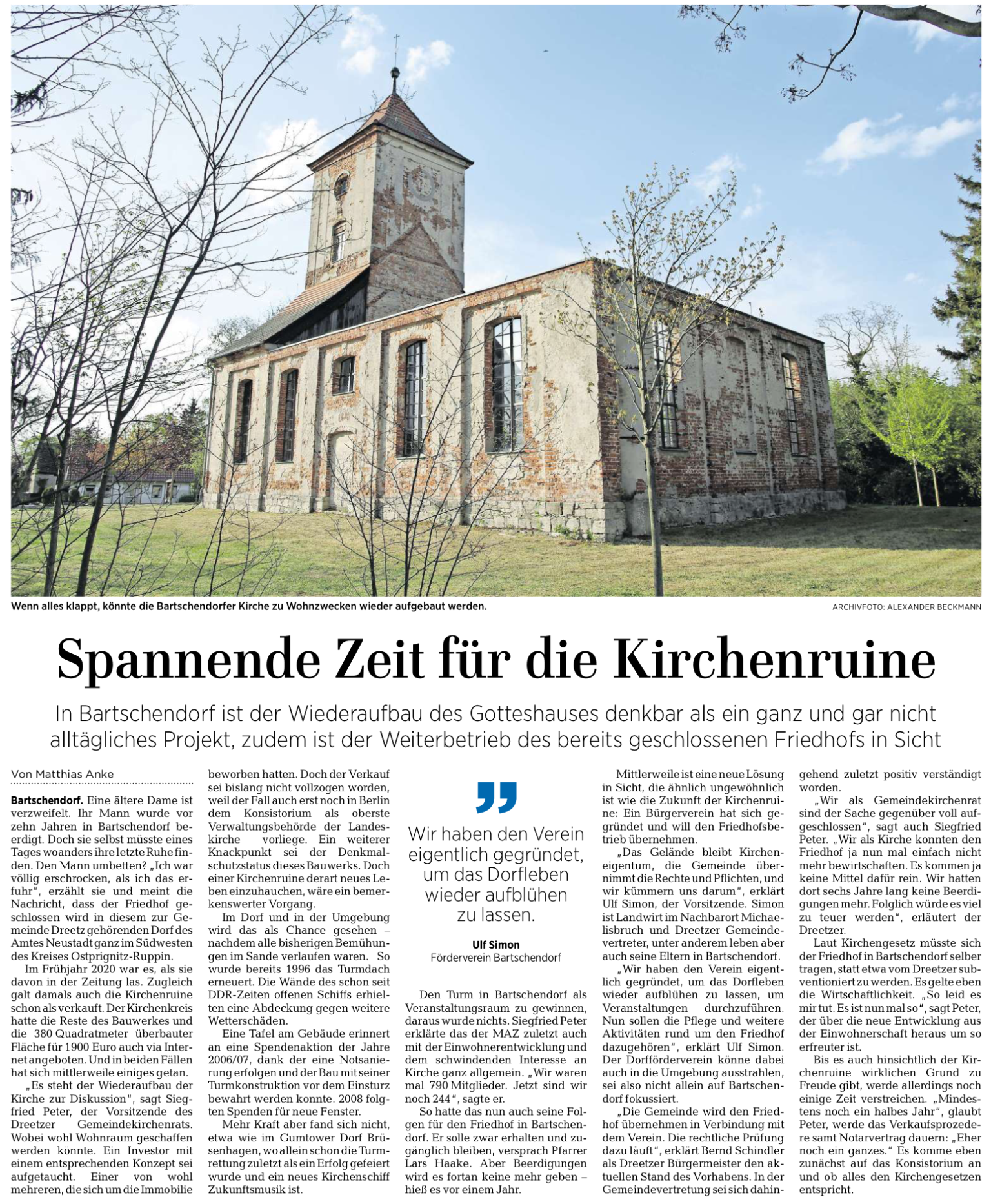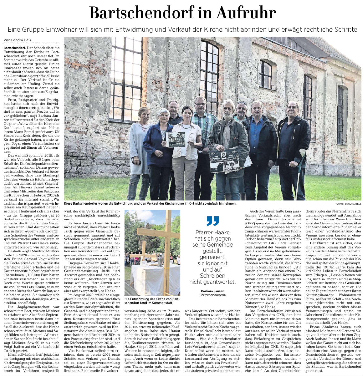 01.04.2021: Verkauf der Bartschendorfer Kirche sorgt für Ärger