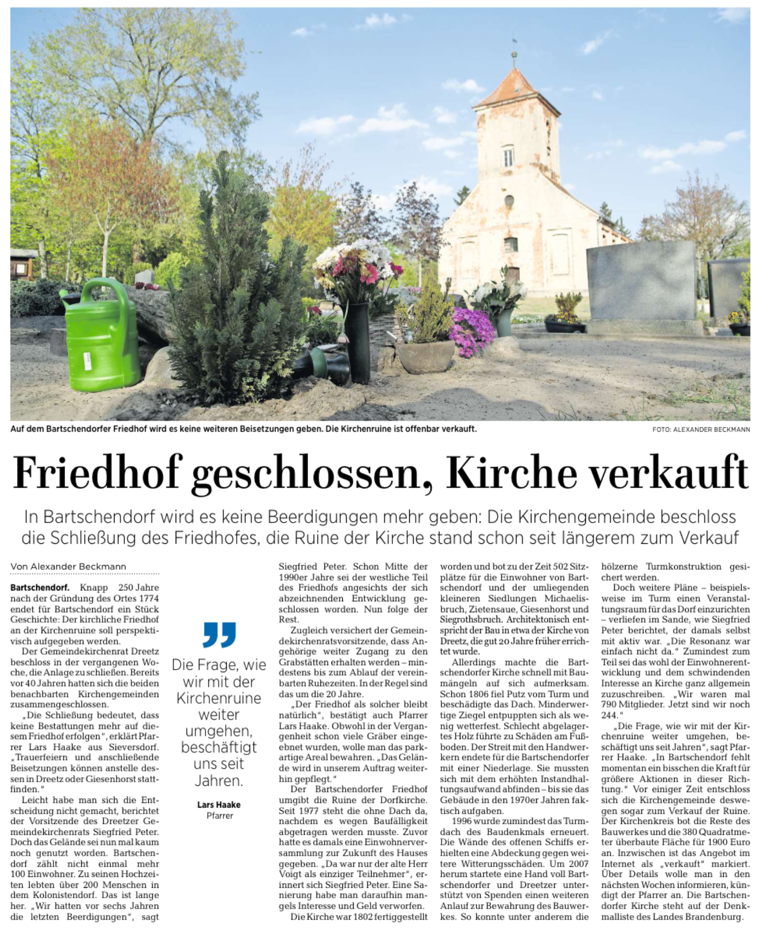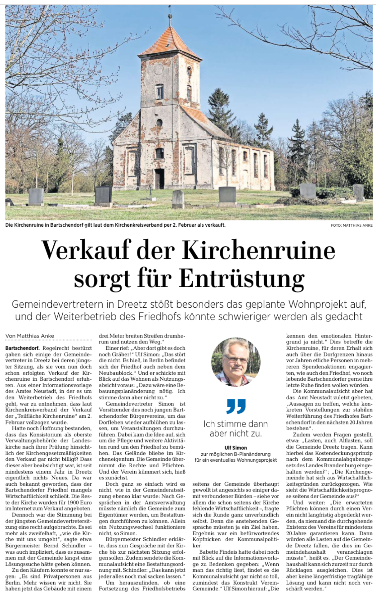 01.04.2021: Verkauf der Bartschendorfer Kirche sorgt für Ärger