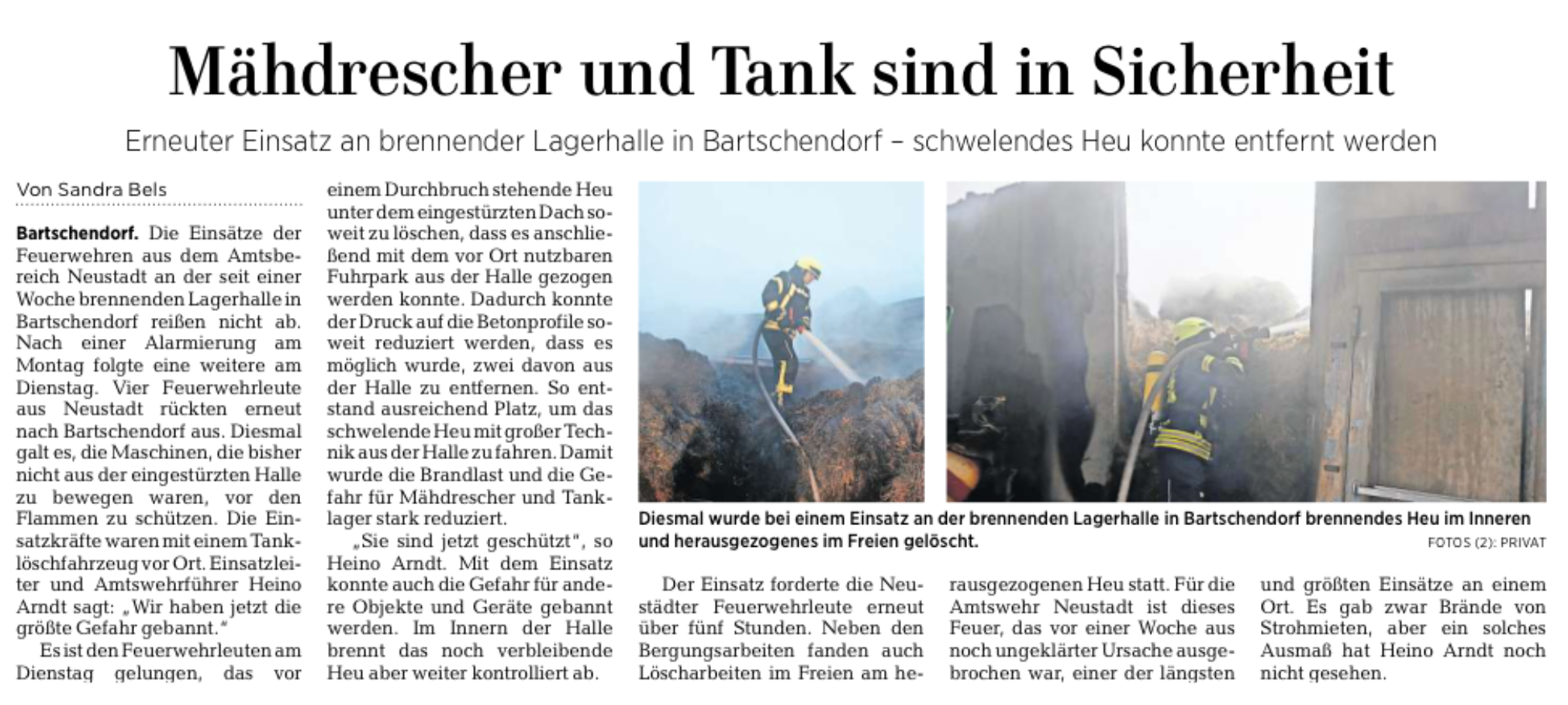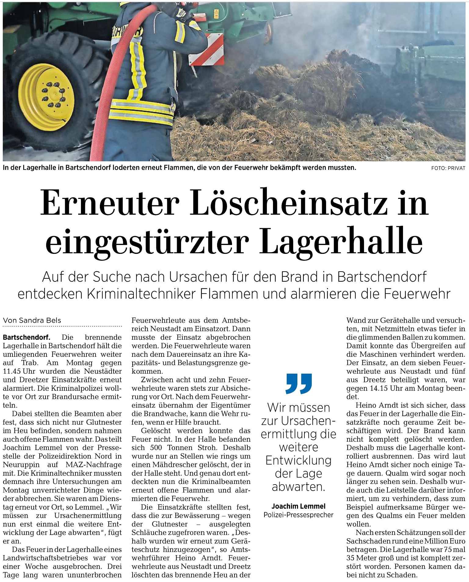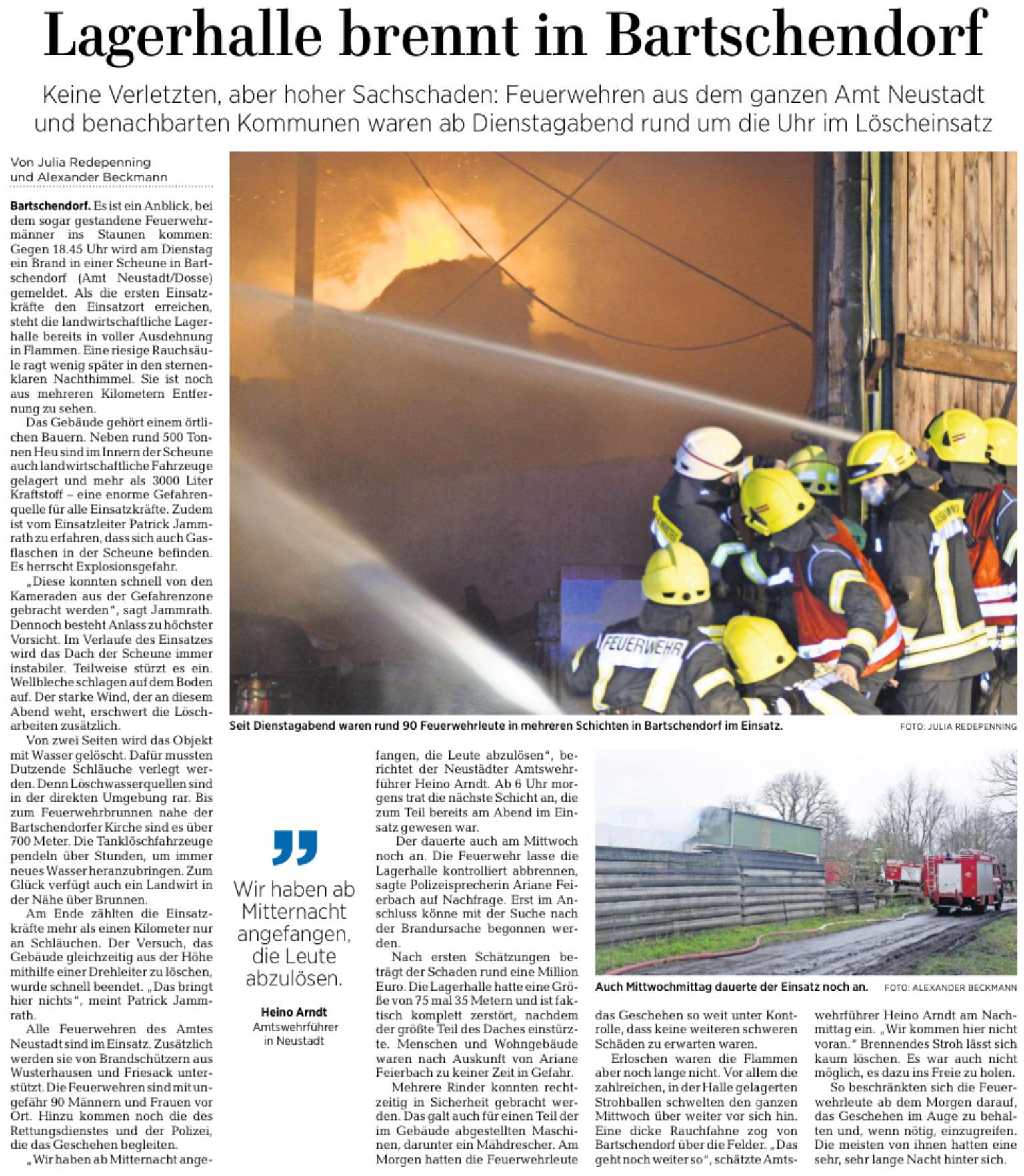 14.01.2021: Lagerhalle in Bartschendorf brennt aus