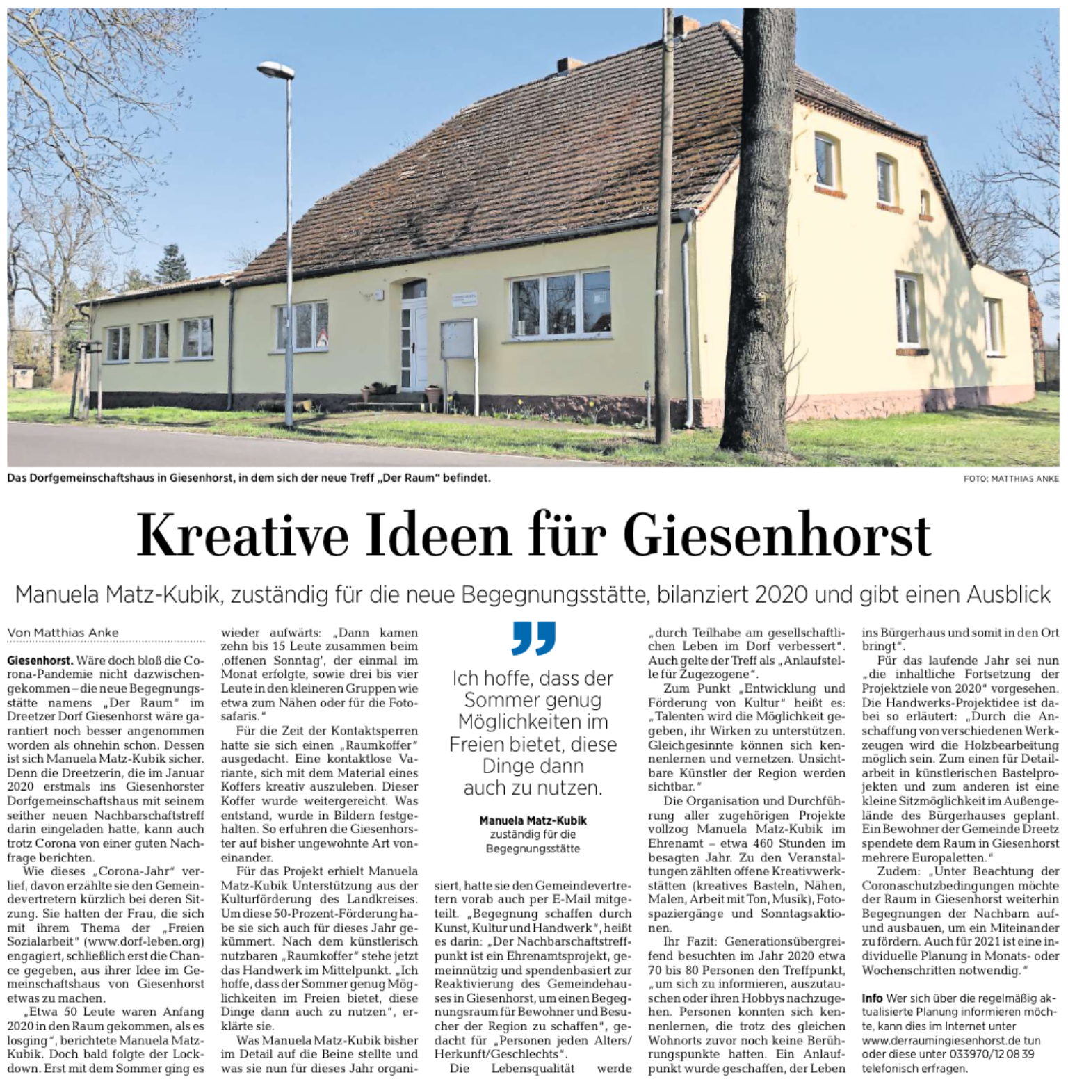 31.03.2021: Kreative Ideen für Giesenhorst ("Der Raum")