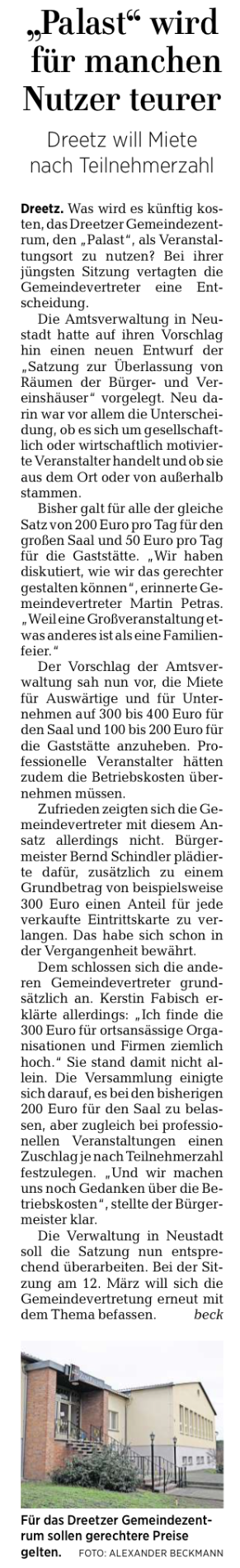 04.02.2020: Neuregelung der Saal-Gebührensätze