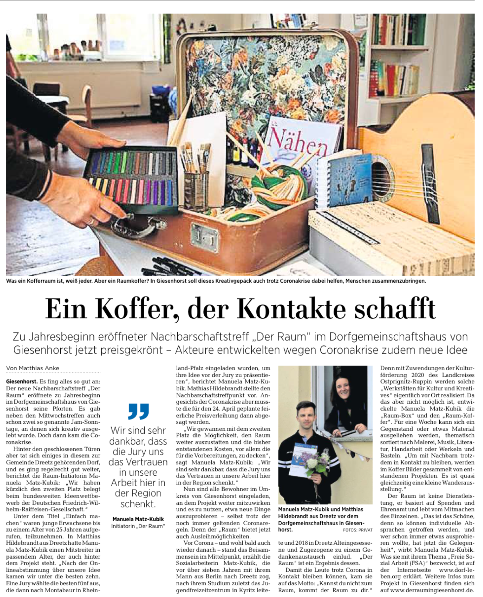 07.05.2020: Der Raum Giesenhorst: Ein Koffer, der Kontakte schafft