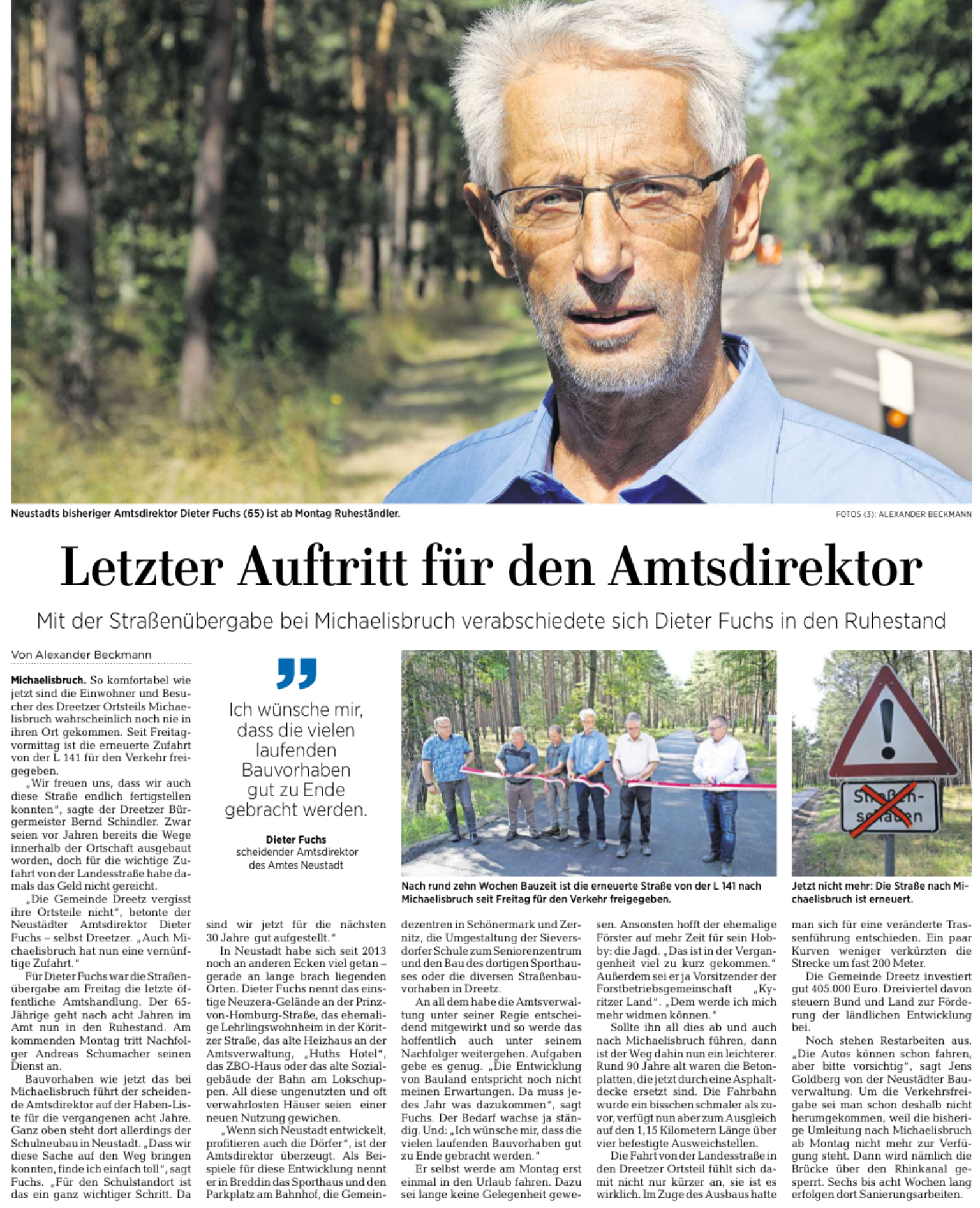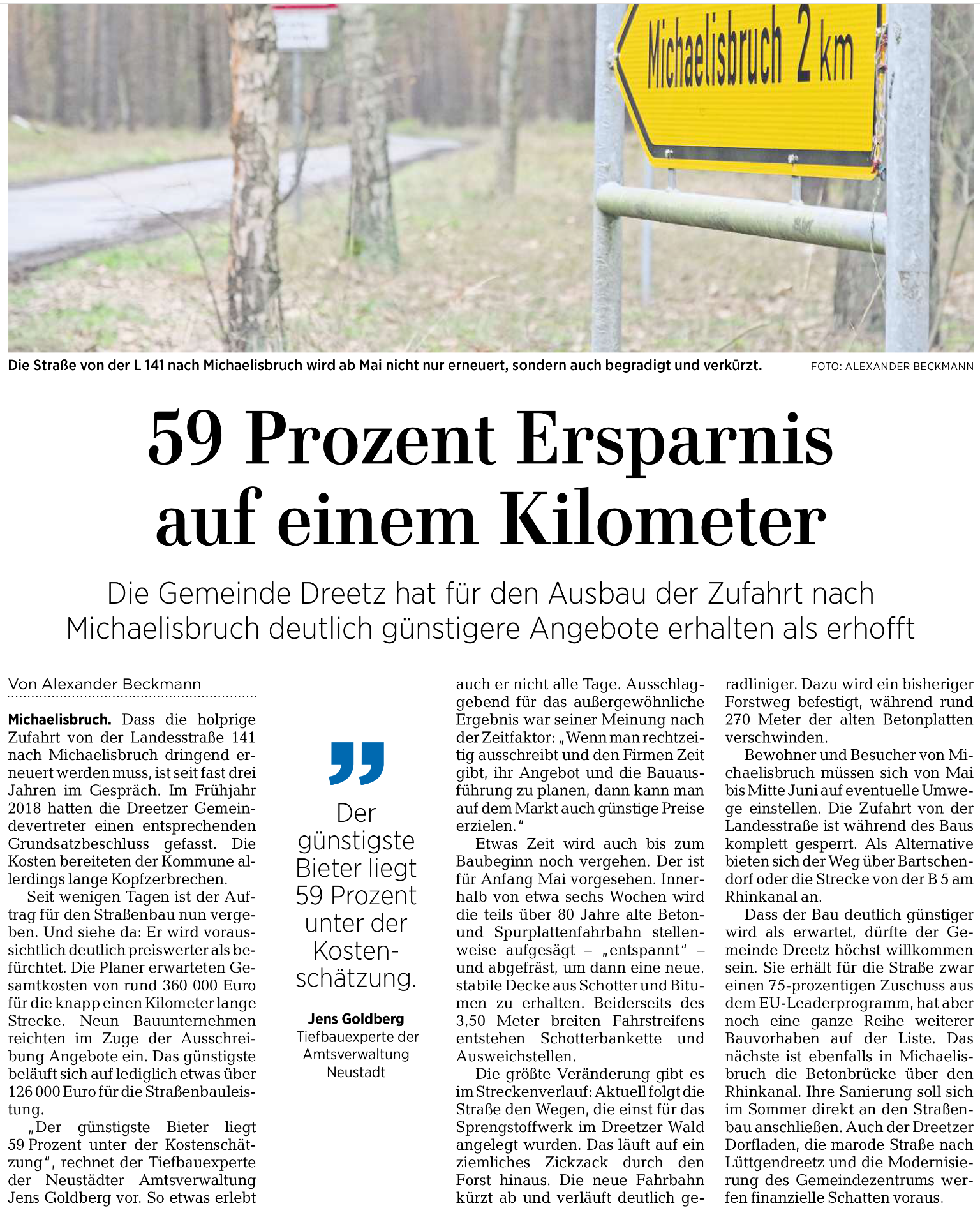 01.03.2021: Straßenausbau nach Michaelisbruch wird deutlich günstiger