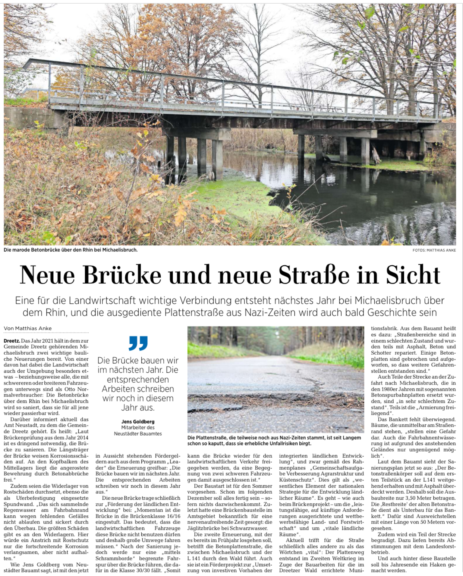20.11.2020: Neue Brücke für Michaelisbruch in Planung