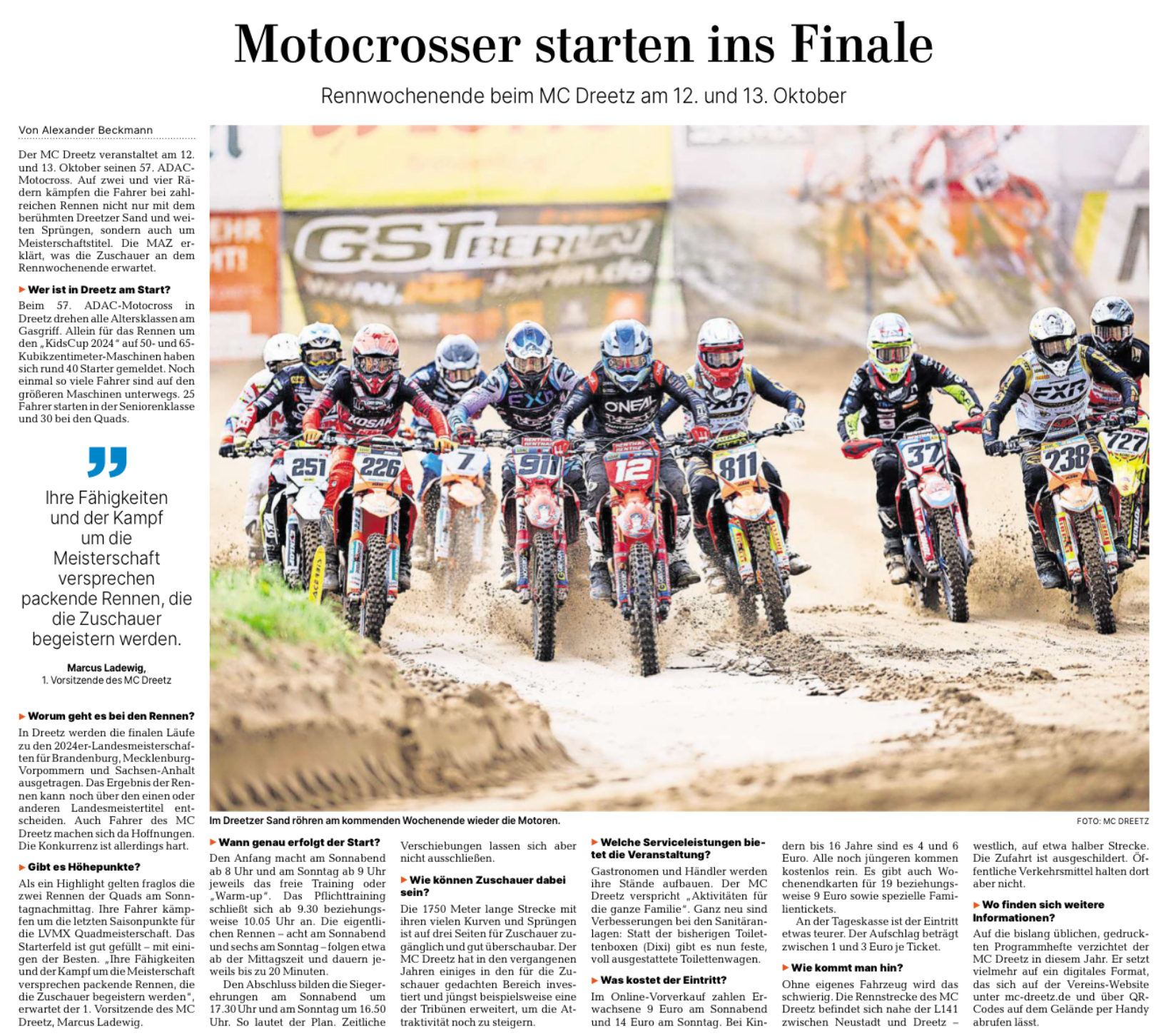 - Pressebericht zum 1. ADAC MX Masters beim MC Dreetz e.V. im ADAC